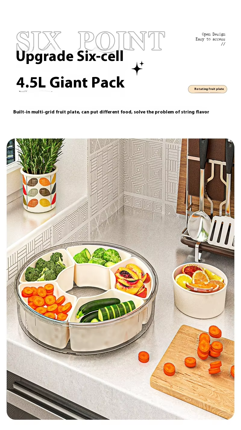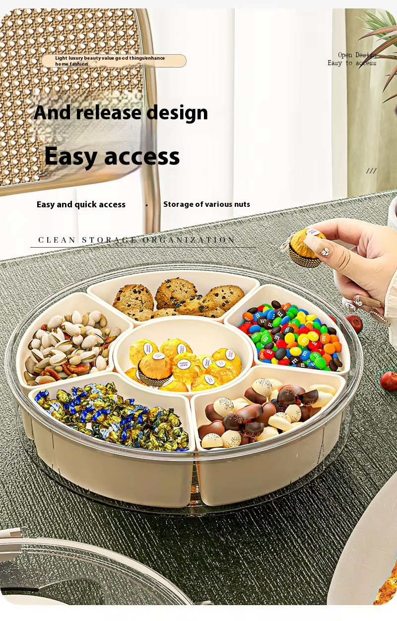 Whether you're hosting a lively family dinner, a weekend barbecue, or a festive celebration, this tray is a game-changer. Its smart six-compartment design allows you to neatly separate fruits, snacks, nuts, and more, keeping everything organized and looking appetizing. No more mixing up flavors or dealing with cluttered platters! 🍉🍇