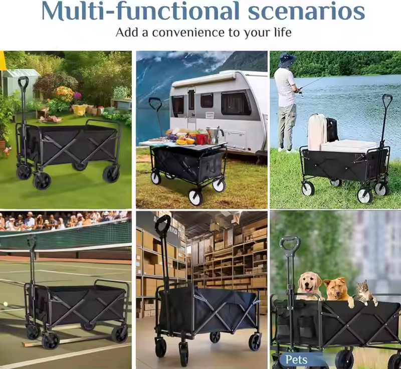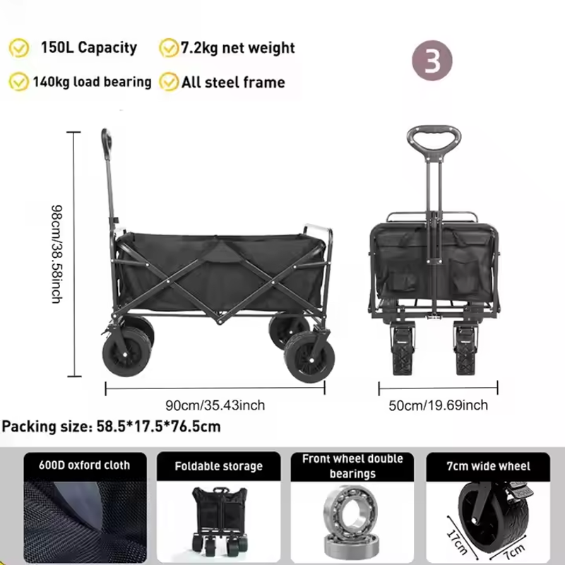 150L 140kg Foldable Wagon | All-Steel Frame | 360° All-Terrain Wheels | One-Second Fold | Camping & Home
