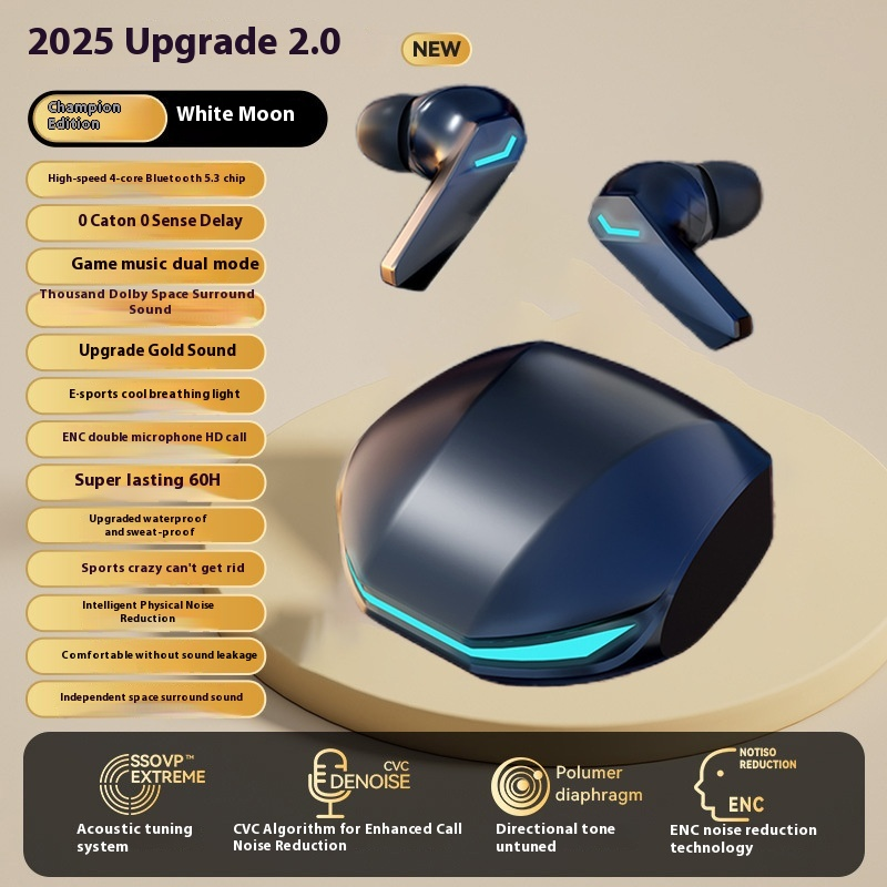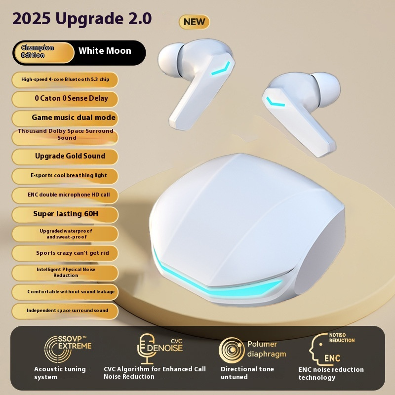 2025 Upgrade 2.0 | Gaming - Music Dual - Mode TWS Earbuds: 0 Latency, Dolby Surround, 60H Playtime
