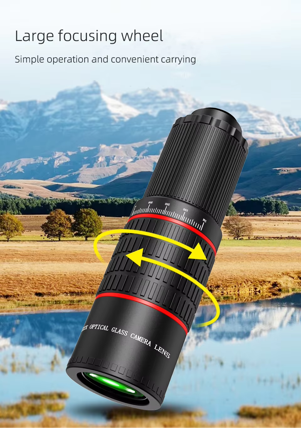 Designed for versatility, pair it with a handheld tripod or tabletop tripod (not included) for steady shots, even in dynamic environments like sports events. The large focusing wheel offers smooth, precise adjustments, making sharp image capture effortless.