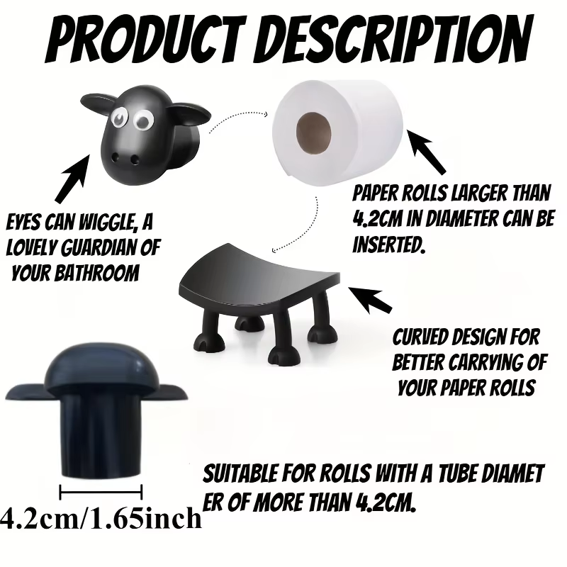 Transform your bathroom with this charming sheep - shaped toilet paper holder. Its 3D structure and black - and - white color scheme bring a playful vibe. The wiggling eyes add a lively touch, making it a fun guardian for your bathroom—no more boring toilet paper stands!
