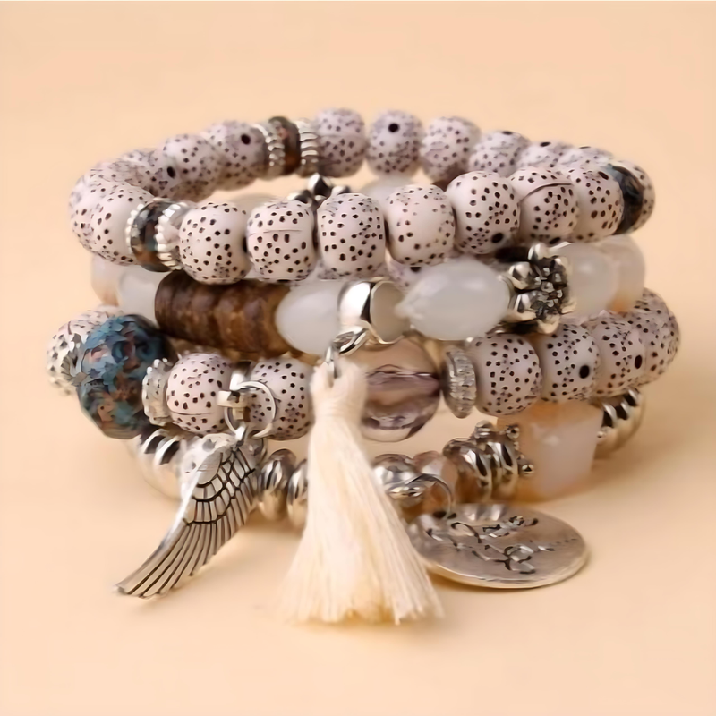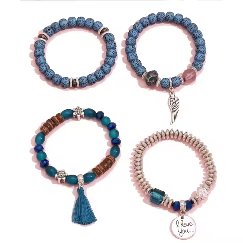 Bohemian - Style Multi - Layer Elastic Bracelet with Alloy Wings, Letter Round Pendant & Turquoise: Embrace Free - Spirited Elegance on Your WristThis bracelet is a stunning embodiment of Bohemian style, where freedom, romance, and artistry converge. The multi - layer design creates a captivating visual narrative, each layer telling a unique story, adding depth and charm to your wrist.