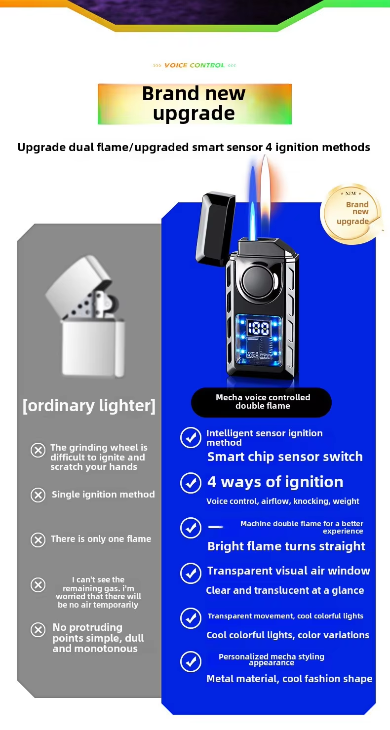 Whether you’re a smoker, outdoor adventurer, or gadget lover, this Smart Dual - Flame Lighter elevates your experience. Ignite innovation—
