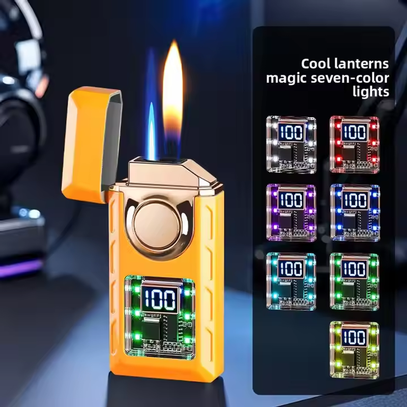 A clear LCD shows battery life and ignition count. Seven - color LED lights glow through the transparent panel, turning a simple lighter into a futuristic accessory.