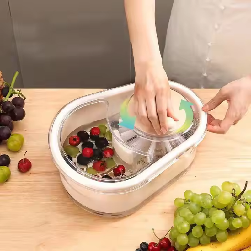 Just spin the handle! 360° cyclonic water + soft nylon brushes scrub every fruit thoroughly—no manual rubbing needed. Save time, energy, and your nails!