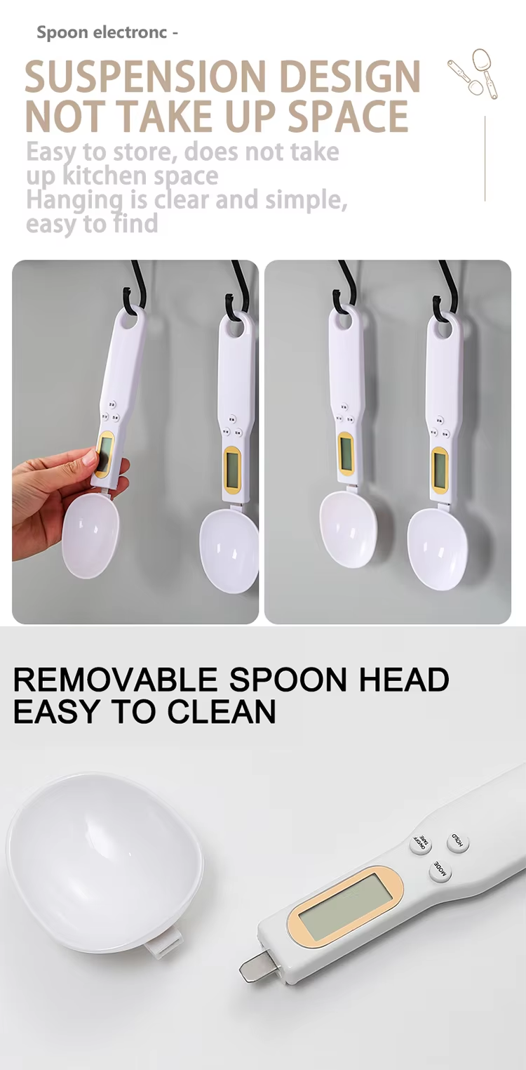 Why juggle multiple tools when you can have both a scale and a spoon in one? Its ergonomic handheld design fits comfortably in your palm, allowing you to scoop ingredients directly from containers and weigh them instantly. Small enough to slip into any drawer or cabinet, it’s always at your fingertips when you need it.