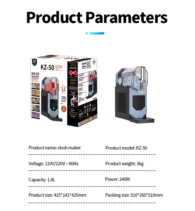 With its contemporary design and compact footprint (415*143*425mm), the KZ - 50 seamlessly blends into any high - end kitchen, bar, or entertainment space. Weighing just 10kg, it combines portability with power (240W), while the 1.8L working capacity caters to both intimate gatherings and larger soirees.
