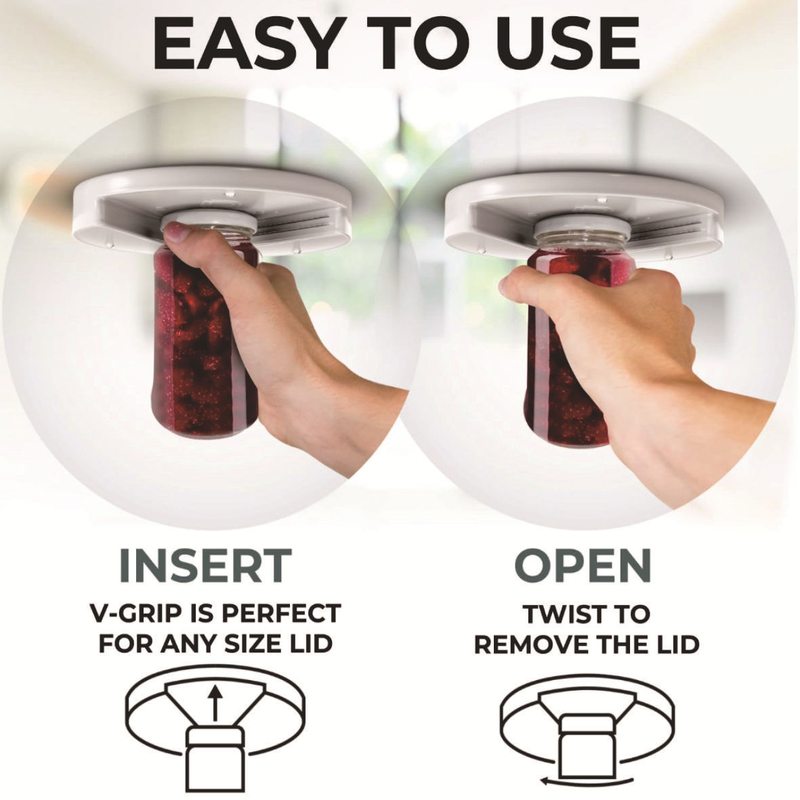 The V - grip design works with all lid sizes—small spice jars, large pickle containers, and everything in between. No more struggling to find the right tool.