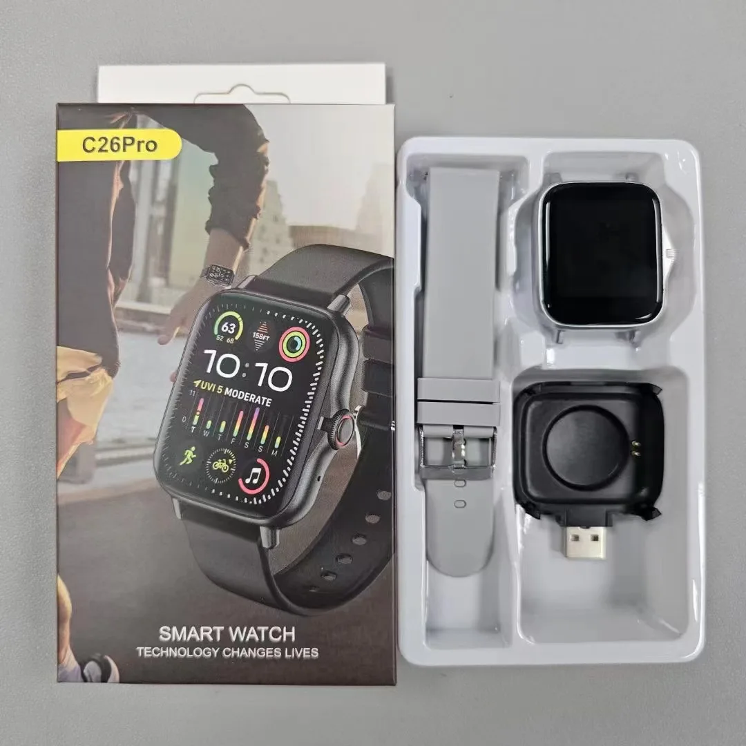 C26Pro All-in-One Smart Watch: 2 Straps + Charger, Multi-Function Health & Fitness Tracker